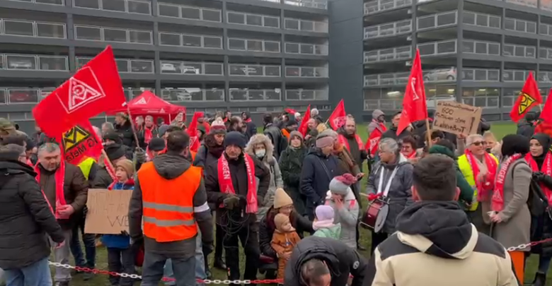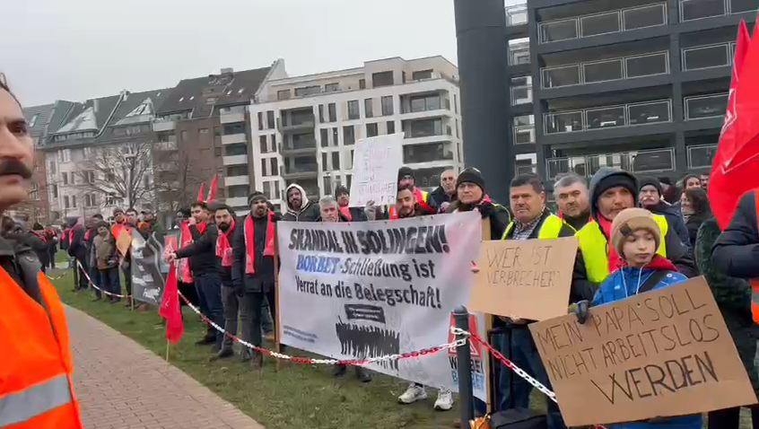 Hiç bir açıklama yapılmadan Borbet patronları tarafından atılan ve 24 Aralık’tan beri direnişte olan işçiler bugün Düsseldorf Parlamentosu önünde miting yaptı
