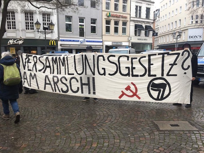 Almanya’nın NRW eyaletinde hükümet tarafından önümüzdeki günlerde parlamentoya sunulacak, polise geniş yetkiler tanıyan yasa tasarısı Köln’de protesto edildi.