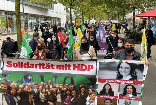 “HDP’liyiz, her yerdeyiz” “HDP’yi kapattırmayacağız” pankartlarının taşındığı eylemde sık sık HDP’yi sahiplenen sloganlar atıldı. Eyleme Alman kamuoyu da ilgi gösterdi.