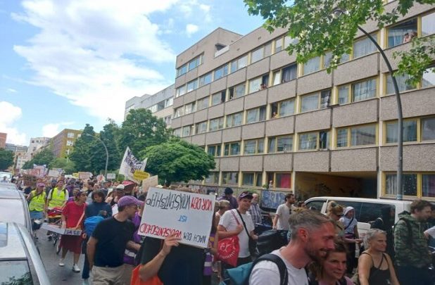 150‘den fazla inisiyatifin içinde yer aldığı kiracılar birliğinin (Bündnis gegen Verdrängung und Mietenwahnsinn) çağrısıyla Potsdamerplatz’da başlayan yürüyüşe 12 bin kişi katıldı.