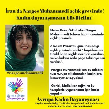 İranlı insan hakları aktivisti, gazeteci, Nobel Barış Ödülü sahibi Narges Mohammadi, Tahran’da tutulduğu hapishanede açlık grevine başladı. 51 yaşındaki Narges Mohammadi, mahkumlara tıbbi bakım sağlanmamasını ve kadınların peçe takma zorunluluğunu protesto ediyor.