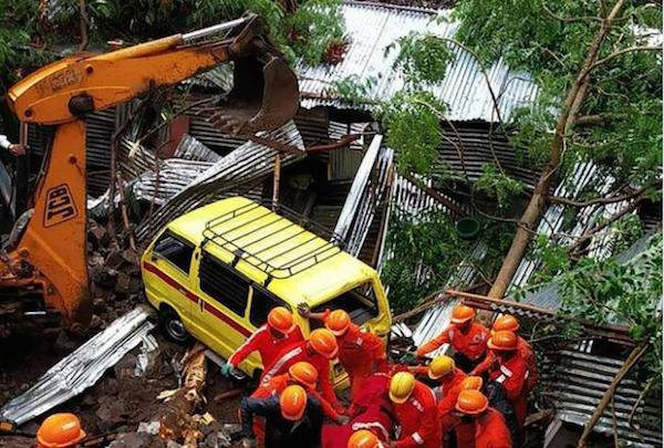 Pune kentinde çok katlı bir sitenin otoparkını çevreleyen ve siteyi göçmen işçi ailelerinin kaldığı barakalardan ayıran 4,5 metre yüksekliğindeki duvar, aşırı yağışın etkisiyle çöktü.