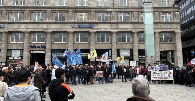 Köln’de, ADGB (Avrupa Demokratik Güç Birliği)’nin çağrısıyla saat 18’de Merkez Tren Garı önünde başlayan protesto eyleminde yapılan konuşmalarda, iktidarın Van’daki seçimi gasp etme girişimi teşhir edildi; bu tür saldırıların kabul edilmeyeceği, sonuna kadar direnileceği vurgusu yapıldı.
