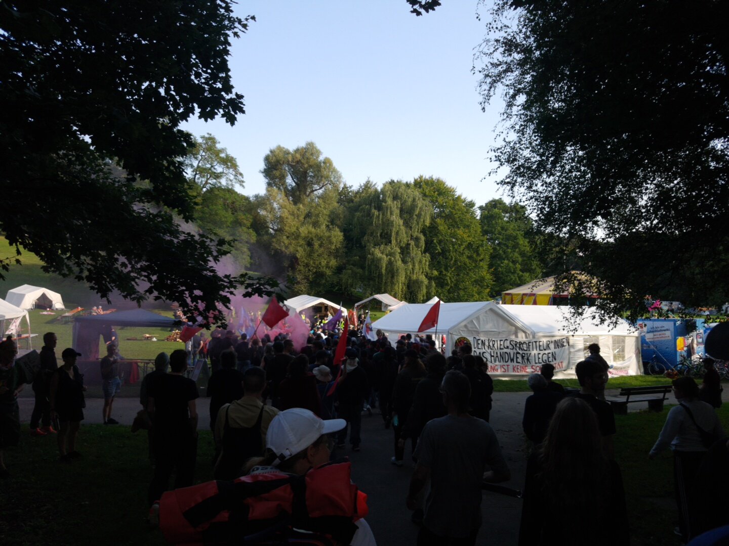 Almanya’nın dört bir yanından gelen eylemciler, Kiel’de bir araya gelerek silah ihracatını, silahlanmayı ve savaşları protesto ediyor. Salı gününden bu yana kamp kuran eylemcilerin bu akşam düzenlediği yürüyüşe 600’den fazla kişi katıldı. Eylemde taşınan pankartlarda ise “Devrimler savaşları bitirir. Alman emperyalizmini yıkalım” “Zenginler savaş, gençler bir gelecek istiyor“ sloganlarının yer aldığı görüldü.