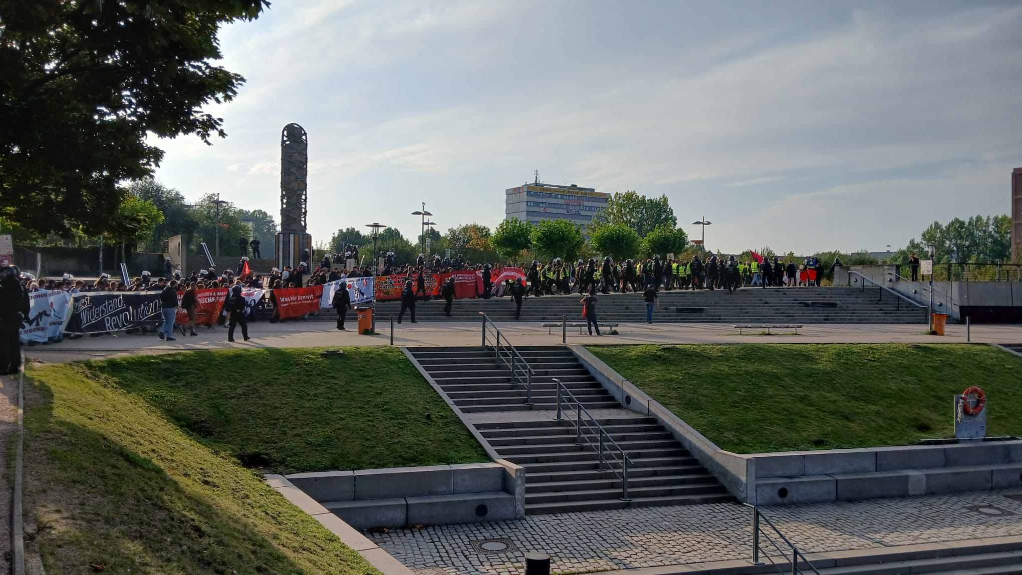 Polisi saldırısı ve çatışma, polisin Gablenz Köprüsü’nde yürüyüşçüleri durdurmak istemesi üzerine yaşandı.