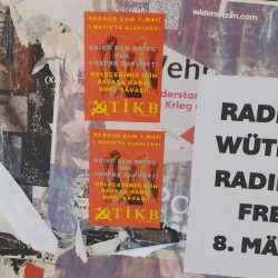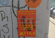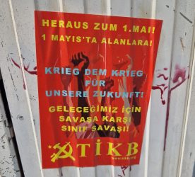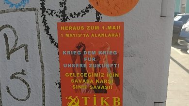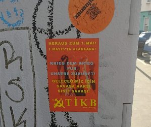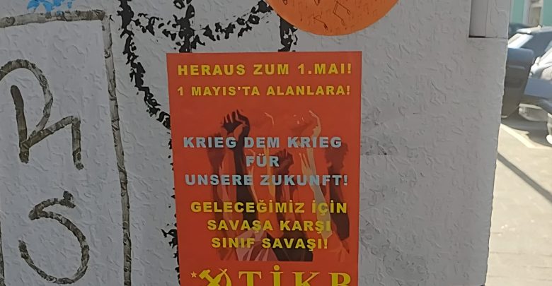 Elimize e-posta yoluyla gelen habere göre, Köln kenti TİKB imzalı, üzerinde Almanca ve Türkçe “Geleceğimiz için savaşa karşı sınıf savaşı!”, “1 Mayıs’ta alanlara!”, “21. yüzyıla sosyalizmi yazacağız!” yazılı stickerlarla donatıldı. Ehrenfeld, Kalk, Hansaring, Ebertplatz, Mülheim semtlerinde bir çok noktaya stickerlar yapıştırıldı.