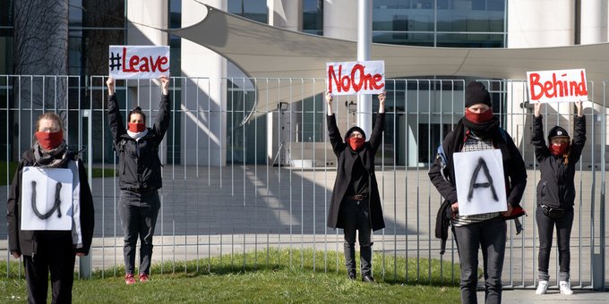 Hamburg, Berlin ve daha pek çok şehirde aktivistler, sokaklarda, balkonlarda „hiç kimse arkada bırakılmasın“ (#NoOneLeftBehind), „Kamplar boşaltılsın“ „Sınırlar açılsın“ yazılı pankartlari dövizler asılıyor.