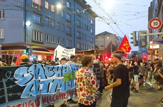 Bugünkü yürüyüşümüz, Zürih’te ırkçılığa ve ırksal ayrımcılığa karşı, baskının ve sınırların olmadığı bir dünya içindir.