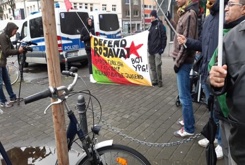 Köln’de Hans Böckler Platz’da bir araya gelen göstericiler, Başbakan Angela Merkel hükümetini ve Türkiye rejimini protesto etti. Eylemde Rojava ile dayanışmayı büyütme ve ortak mücadele vurgusu öne çıktı.