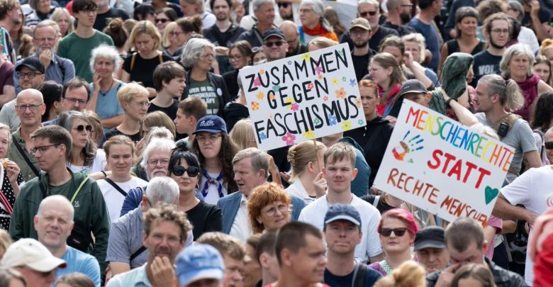 Almanya’da önümüzdeki Pazar günü yapılacak seçimler öncesinde Saksonya ve Thüringen eyaletlerinde ırkçılığa ve faşizme karşı onbinlerce kişi sokağa çıktı.