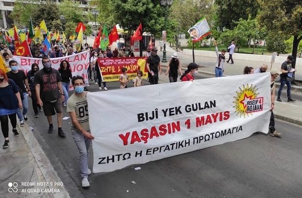 Yürüyüşe Türkiye ve Kürdistanlı kurumlar da katıldı. Proplia Meydanı’nda başlayan yürüyüş aynı noktada sonlandırdı.