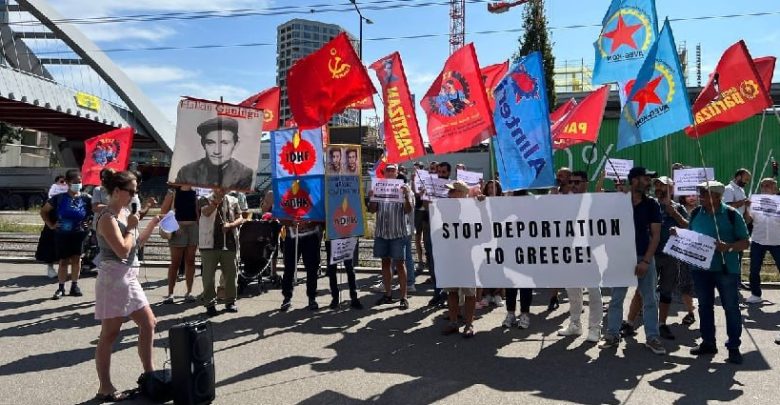 İsviçre devletinin, aralarında Çağlar Fakir’in de bulunduğu 14 sığınmacıyı Yunanistan’a zorla geri gönderme kararına karşı Zürih’te basın açıklaması yapıldı.